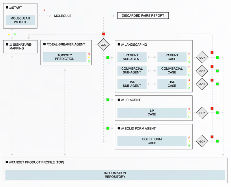 Multi-agent platform identifies repurposing, discovery & combination opportunities using >70 structured criteria — reducing human bias, academic friction & cycle time.