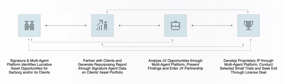 Once an asset is identified through the Signature Agent, Sarborg utilizes its proprietary technology and multi-agent platform to repurpose it into the most suitable indications, optimizing its therapeutic potential. Following this, the company has the flexibility to either develop the product further or license it out to partners, supported by comprehensive data generated from its findings.